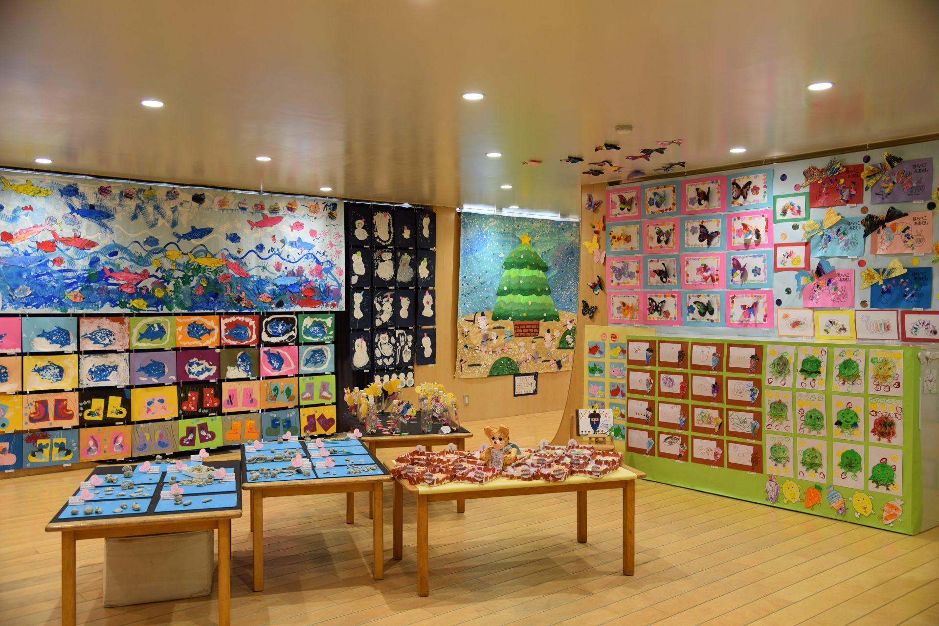 いつもの幼稚園が、色とりどりのギャラリーに変身です。